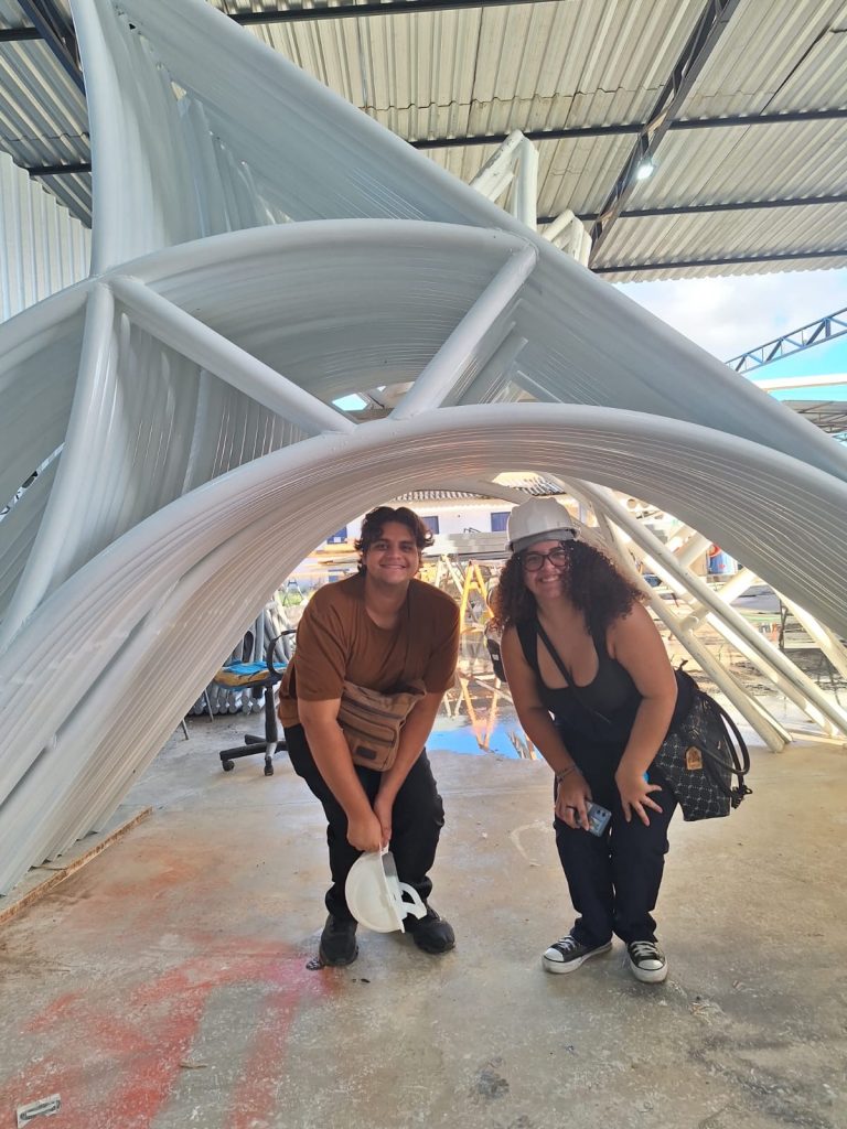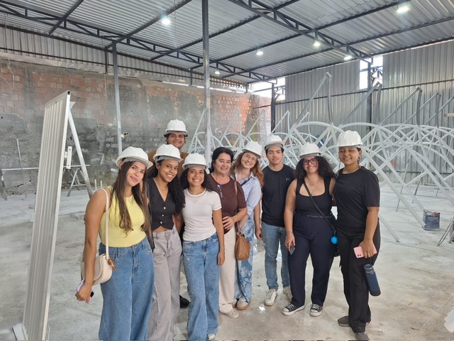 Outro ponto de destaque da visita foi a apresentação do sistema construtivo por meio de contêineres, um método modular que tem ganhado espaço no mercado por sua rapidez, eficiência e caráter sustentável. A abordagem permitiu aos estudantes refletirem sobre soluções inovadoras e contemporâneas na arquitetura.