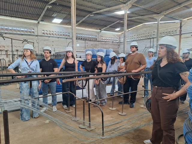 Logo no início da visita, os estudantes foram recepcionados pela representante da empresa, Maria Eduarda Rodrigues, pela gerente comercial, Yandra Gutamara, e, na unidade da AB Indústria, pelo gerente de produção, Davi Silva. Durante o encontro, os profissionais apresentaram o funcionamento da empresa e destacaram a importância do aço e de outros insumos no setor da construção.