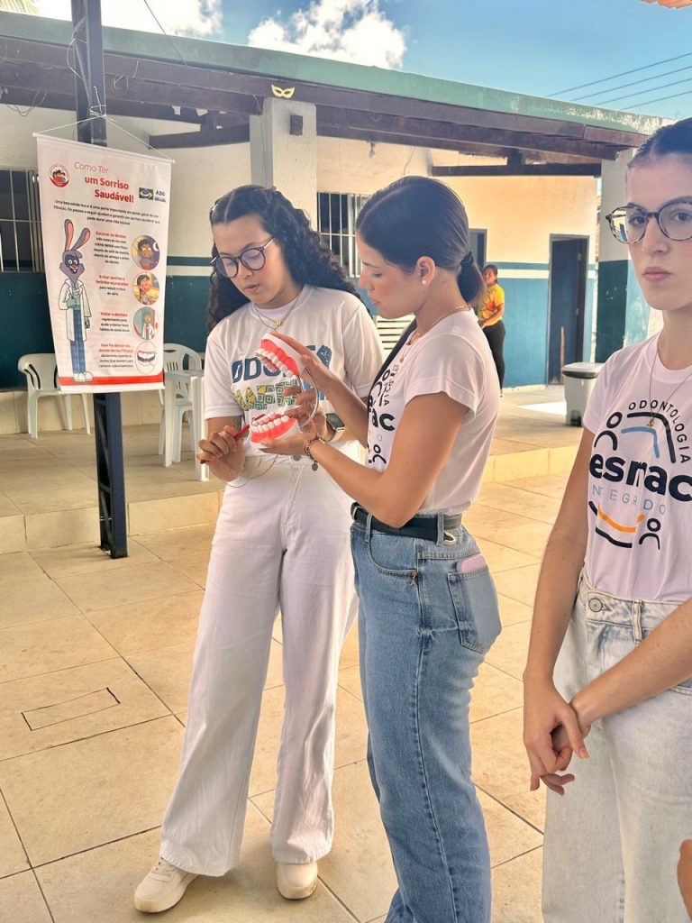 A atividade aconteceu no dia 3 de outubro, no CRAS Dona Anésia Maria da Conceição, e foi coordenada pelo professor Dr. Jorge Vieira, pela professora Dra. Catarina Rosa e pela professora Dra. Caroline Buarque. A iniciativa contou com a participação de quatro estudantes do curso de Odontologia, que desenvolveram atendimentos e orientações de cuidado com a saúde bucal.