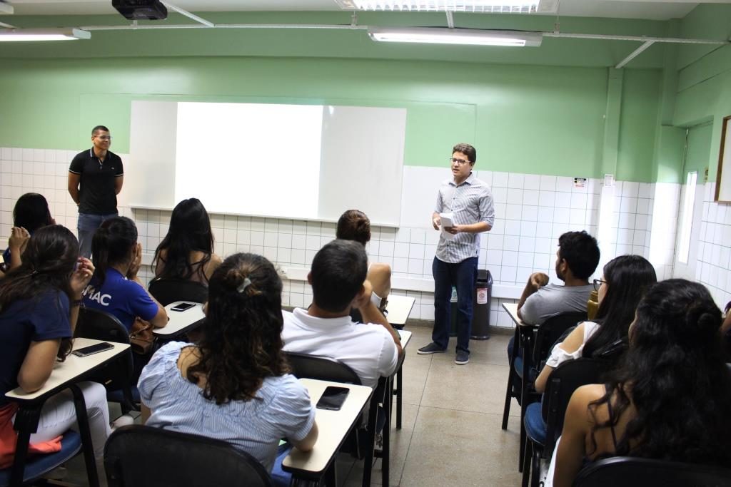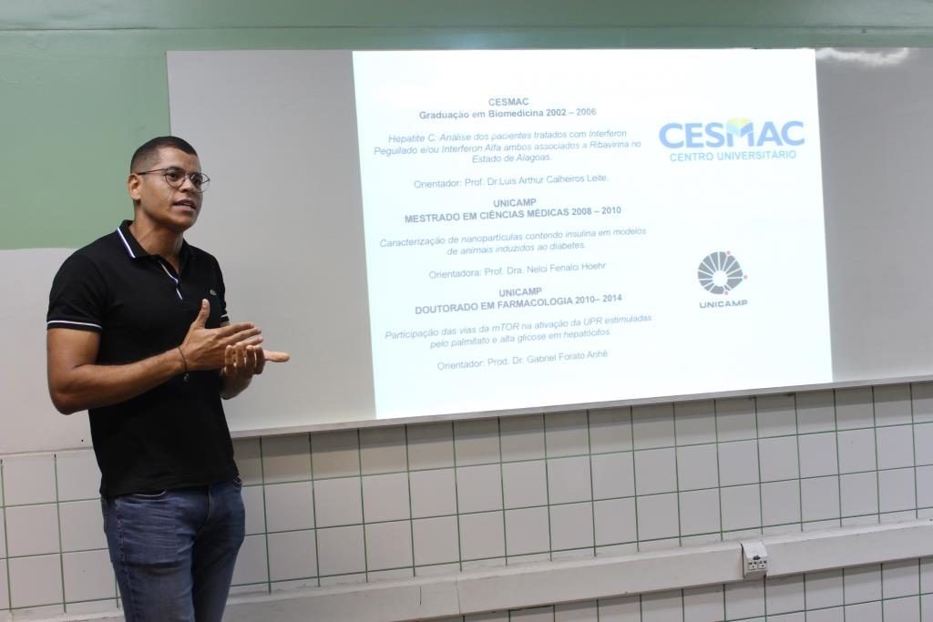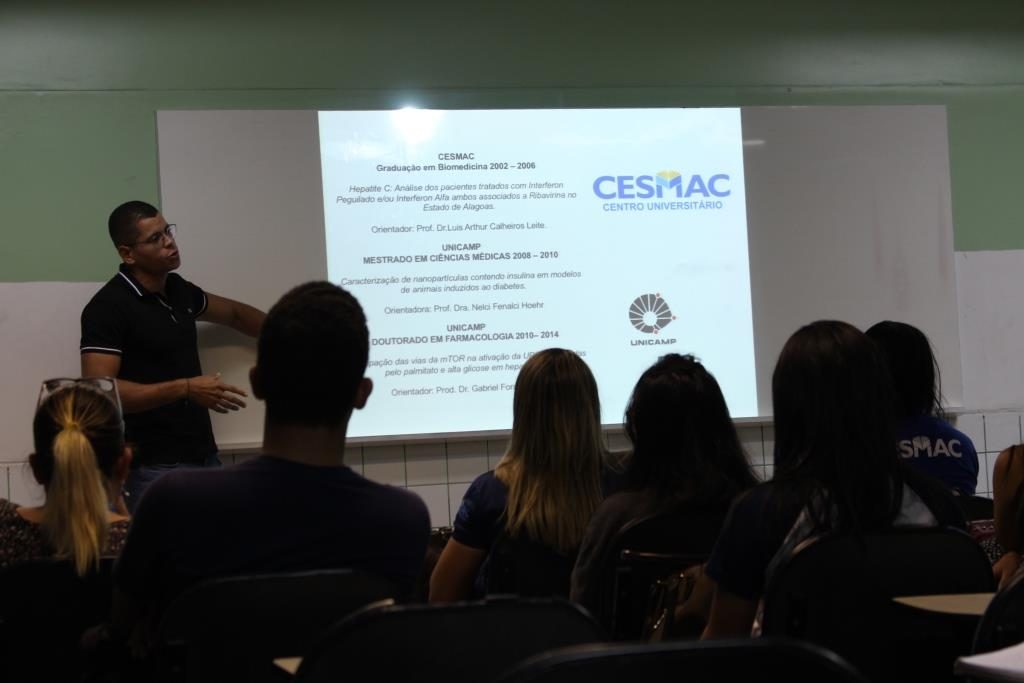 O Café com Biomedicina já é tradição no curso e todo ano traz um palestrante para conversar e dividir sua experiência na área. Dessa vez , biomédico, seu orientador no CESMAC , Prof. Fernando Wagner da Silva Ramos (Coordenador de Pesquisa Institucional) e alunos, se reuniram na sala 103 do Campus I para mais uma atualização.