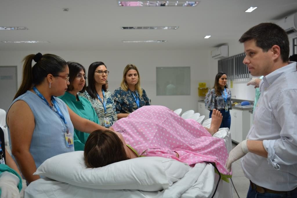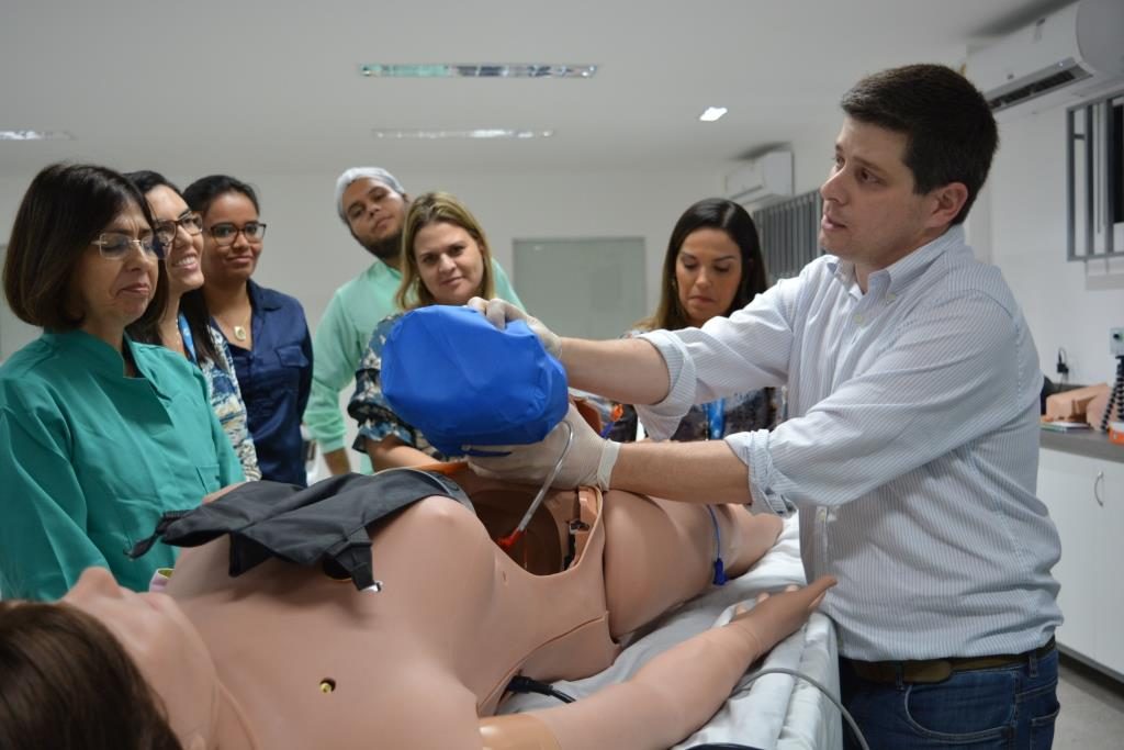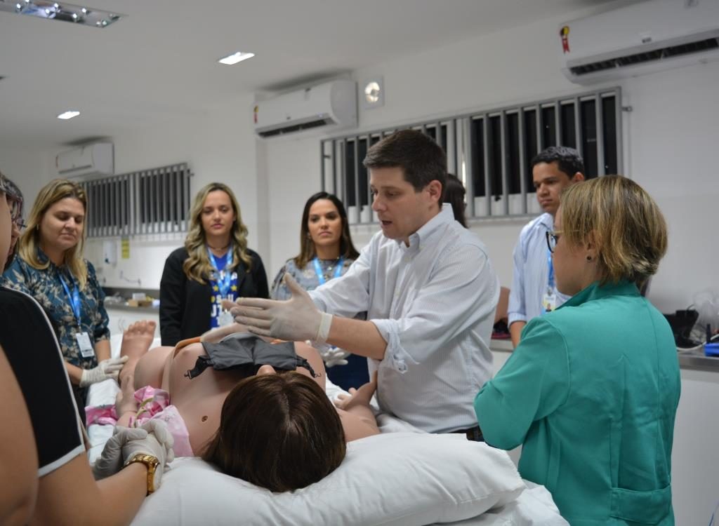 Docentes da área de saúde do Centro Universitário Cesmac estiveram presentes durante toda a manhã desta terça-feira, 28, no Laboratório de Habilidades, para fazer treinamento, capacitação e conhecer todas as possibilidades que o novo simulador obtido pela instituição, denominado LUCINA, proporciona. “ Esse simulador que nós temos hoje aqui, além de replicar um parto natural, também apresenta algumas patologias, complicações e todas as variantes que podem acontecer em um parto. Esse é um grande diferencial para os alunos que terão a oportunidade de aprender com as mais modernas técnicas”, enfatizou a coordenadora de Laboratórios, profa. Marcileide Santos. Acelerar o pensamento crítico e a tomada de decisões clínicas são alguns dos objetivos da prática em um simulador. O cenário proposto nas aulas é o mais real possível.