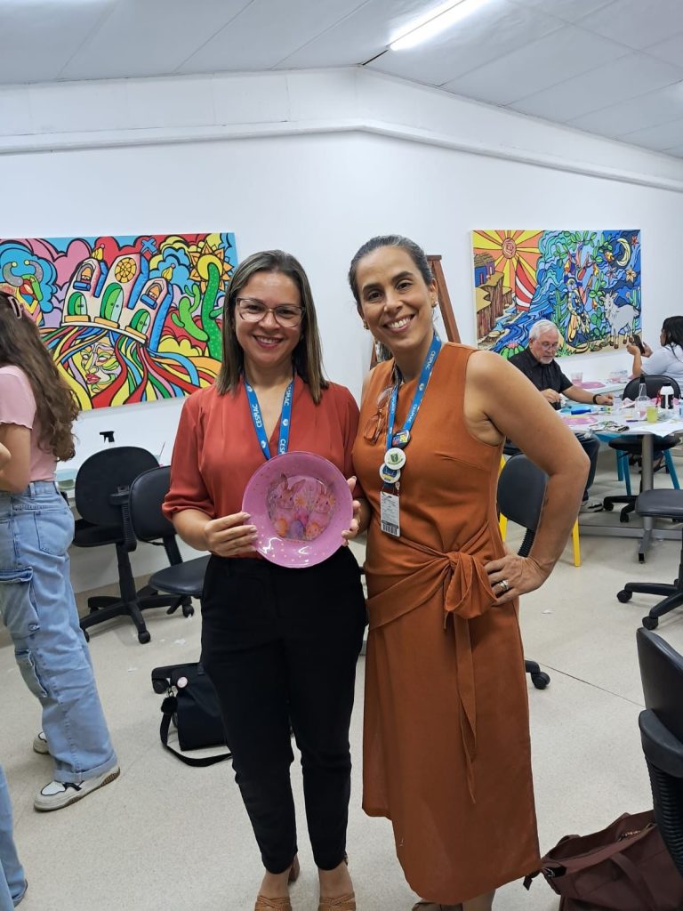 A atividade foi ministrada pela professora Ana Carolina Medeiros, que conduziu o encontro de forma didática, acompanhando cada etapa do processo — desde a escolha dos materiais até a finalização dos pratos decorados. A oficina também incentivou a troca de experiências entre os participantes, tornando o ambiente ainda mais colaborativo e inspirador.