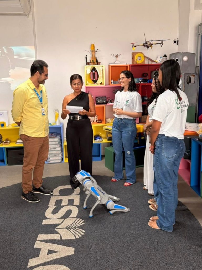Como parte do reconhecimento, os alunos estiveram no CESMAC para receber a premiação e participaram de uma visita guiada ao Centro de Inovação Tecnológica da instituição. Durante o encontro, conheceram projetos desenvolvidos nas áreas de robótica, tecnologia e inovação, ampliando o contato com iniciativas acadêmicas voltadas à pesquisa e ao desenvolvimento científico.