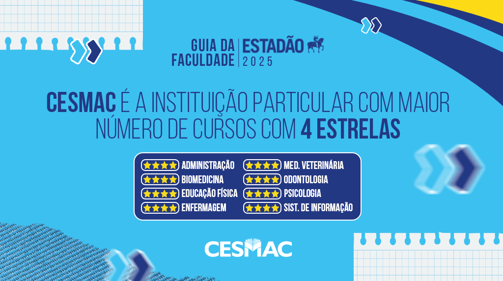 O Centro Universitário Cesmac acaba de alcançar mais um importante reconhecimento nacional. No recém-divulgado Guia da Faculdade, realizado pelo Estadão, a instituição se destacou como a IES particular de Alagoas com o maior número de cursos avaliados com quatro estrelas, reafirmando seu compromisso contínuo com a excelência acadêmica, a inovação e a formação integral de seus estudantes.