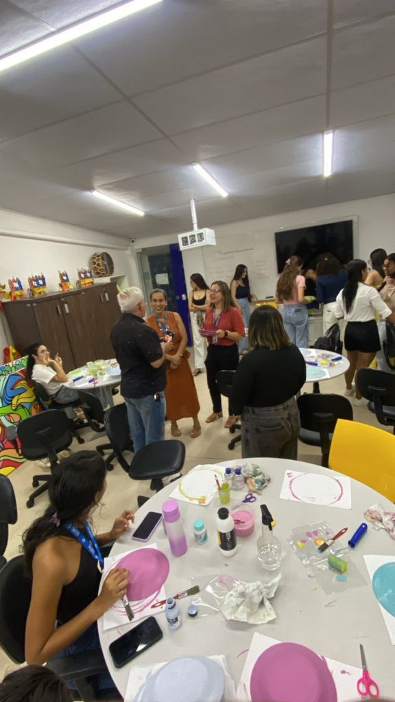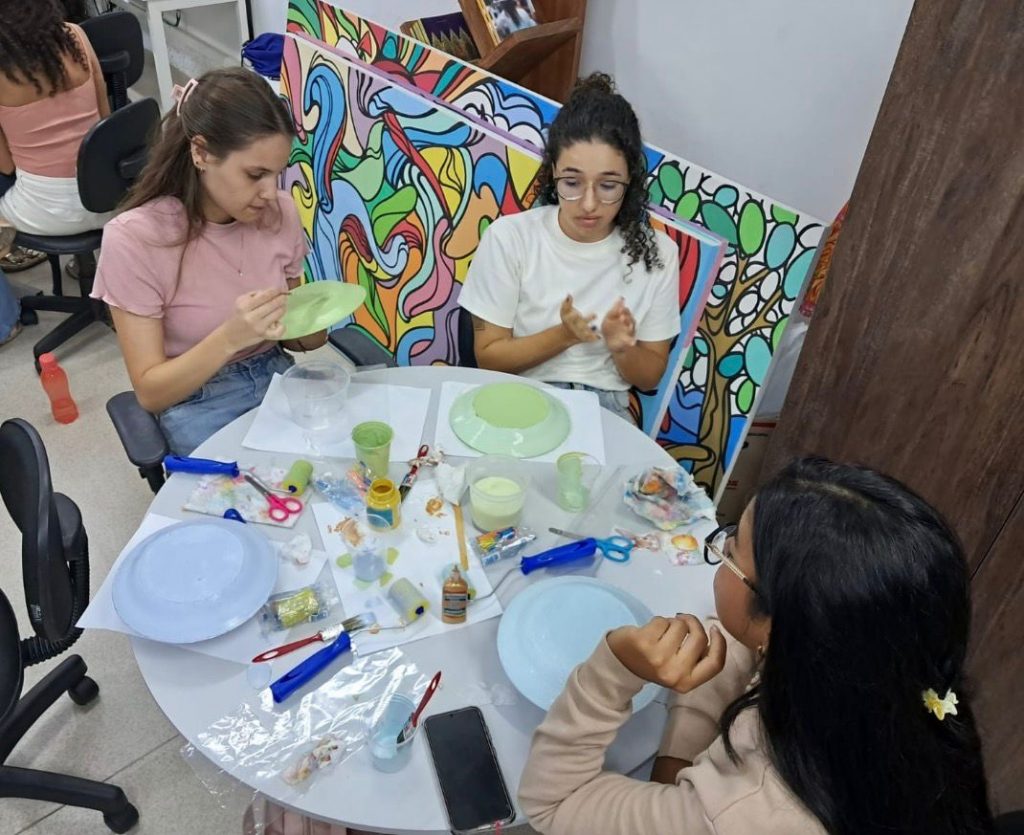 A atividade foi ministrada pela professora Ana Carolina Medeiros, que conduziu o encontro de forma didática, acompanhando cada etapa do processo — desde a escolha dos materiais até a finalização dos pratos decorados. A oficina também incentivou a troca de experiências entre os participantes, tornando o ambiente ainda mais colaborativo e inspirador.